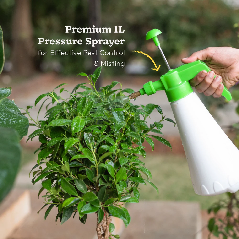 Premium Gardening Kit is specially curated to bring you the best of plant care. Packaged in a portable, weatherproof & waterproof tool bag made with easy-to-clean fabric, this kit brings you ease of use and hassle-free plant care. Additionally, plant protection and growth supplements like the RTU Neem Guard & Seaweed Extract Spray also ensure all-round care for your precious plants.