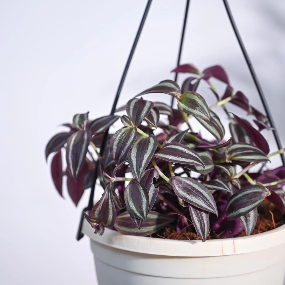 Named aptly after its habit of growing rapidly when unchecked and wandering to the ends of the earth if left to its own devices, the Wandering Jew is an easy plant to grow indoors. Also known as Spiderwort, the Wandering Jew plant is used both in hanging baskets and also as ground cover. The stunning leaves are striped in shades of purple, adding instant color to your garden. Fuss-free and super easy to care for, this plant is stunning in its hanging planter and does well in brightly lit areas.